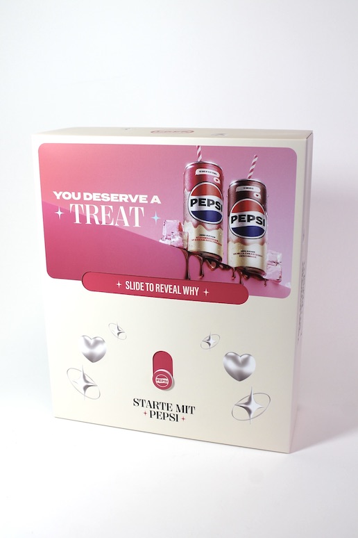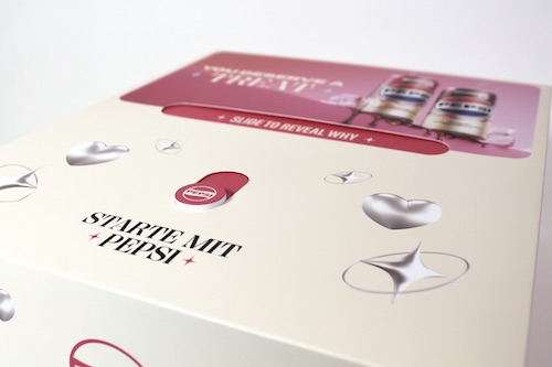 Fuer unseren Kunden PepsiCo durften wir erneut ein tolles Projekt realisieren. Eine Influencer Box mit einem Schiebe-Element im Deckel.